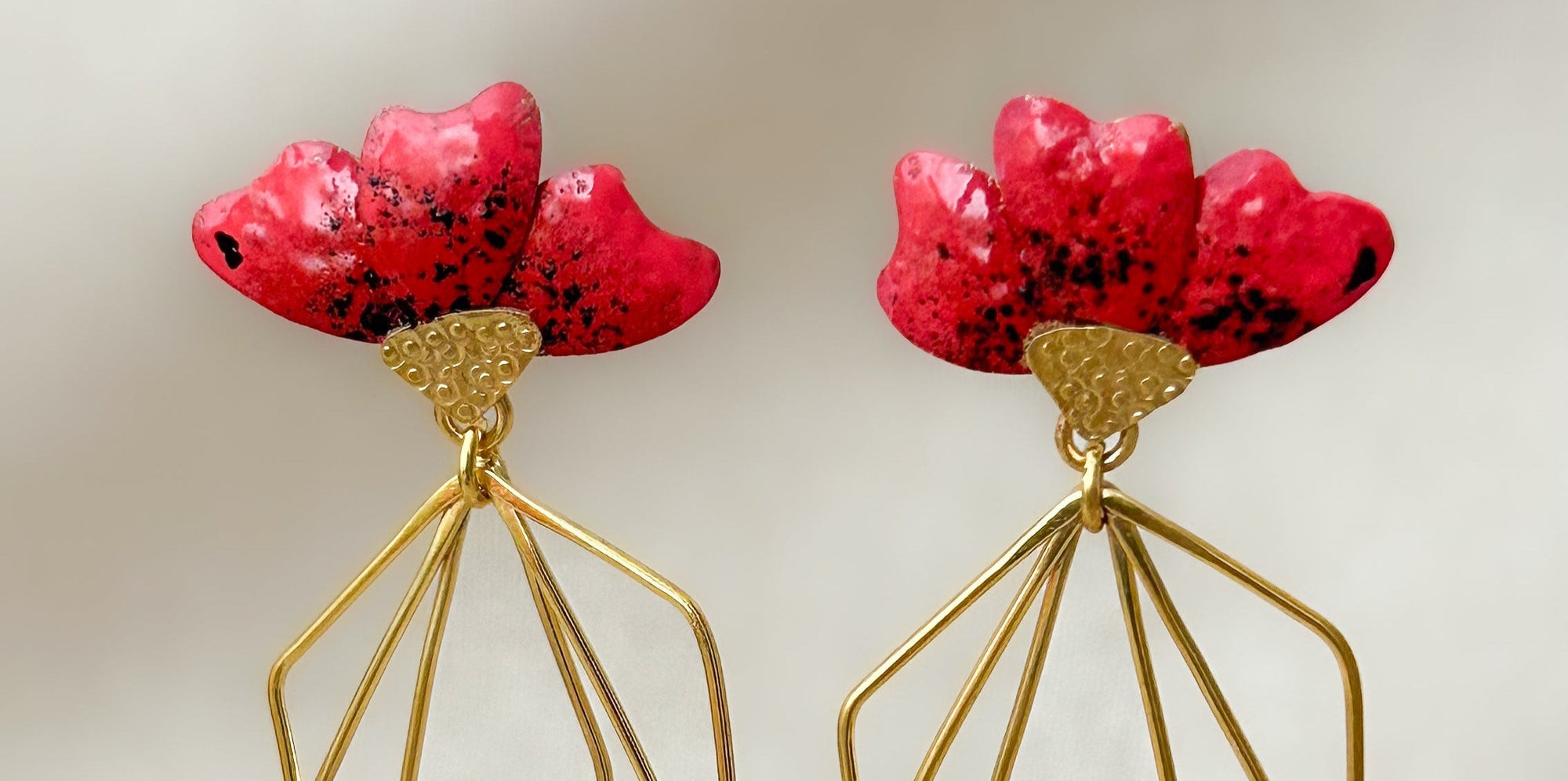 Die bunten Creolen mit den roten Blumen sehen toll aus und tragen sich sehr leicht. Ich hatte Paula darum gebeten, sie aus Silber herzustellen und zu vergolden. Das war kein Problem und sie wurden trotz Mehraufwand schnell geliefert. Danke dafür! Ich werde sie sehr gerne tragen.