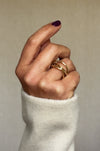 Ideal für alle, die klare Formen lieben, aber das Besondere suchen. Dieser Ring lässt sich wunderbar solo tragen oder mit schlichten Goldreifen kombinieren.